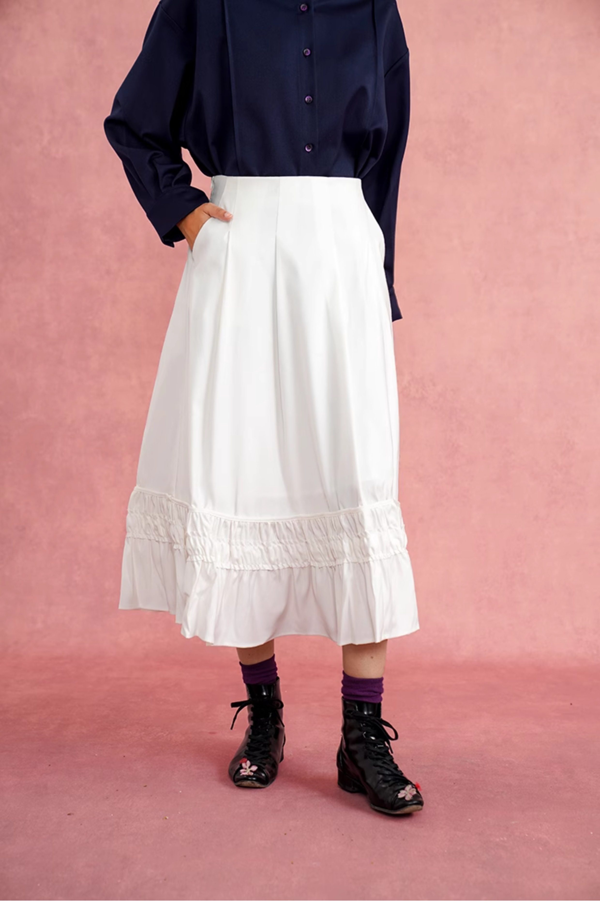 Float into your vintage dreams with our Elegant Pleated Flowing White Skirt. Perfect for any occasion, this skirt adds a touch of playful elegance to your wardrobe. Let the pleats flow and twirl with every step, making you feel like a dreamy fashionista.